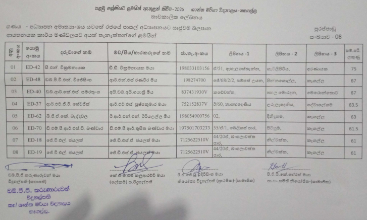 Candidates who were selected by that directly order came from the Ministry of Education,