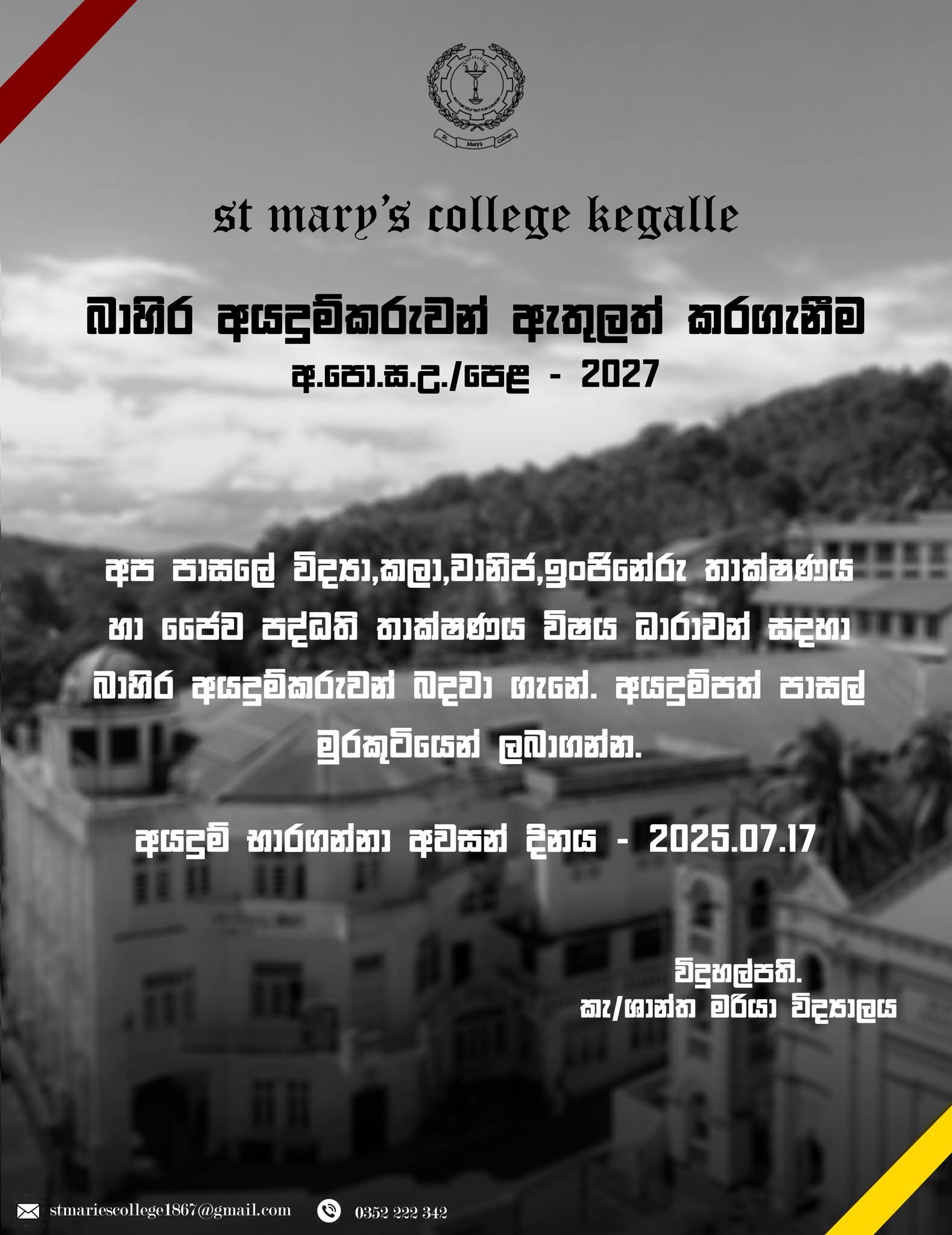 St. Mary’s College Broadcasting Unit is ready to bring you all the information about the St. Mary’s College Kegalle from now…So stay tuned with us…We hope to be successful in a way that no one has ever done…Thank you all